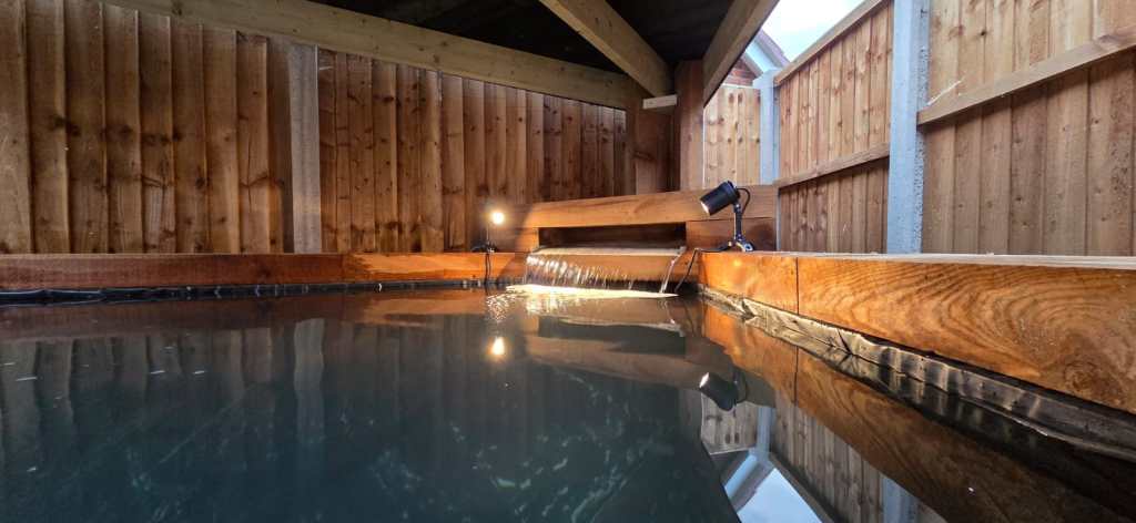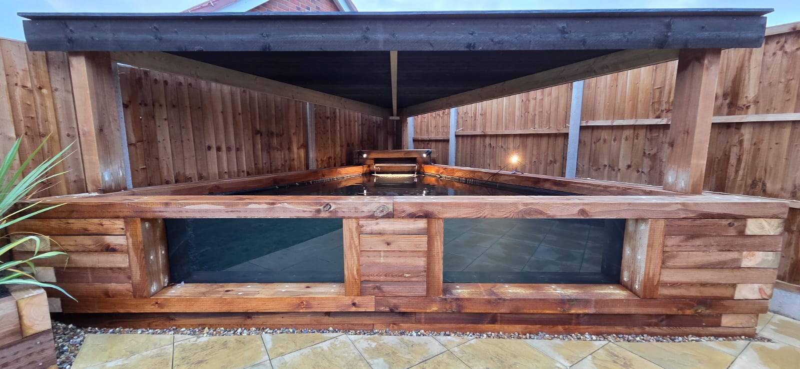 - A bespoke roof structure, carefully built to provide shade and maintain water quality